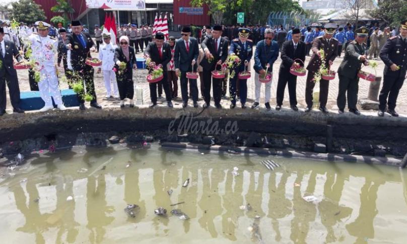 Upacara berlangsung khidmat dan pelarungan bunga diawali oleh Danlanal. Kemudian selanjutkan dilaksanakan tabur bunga oleh Danlanal Tegal, Wali Kota Tegal, Wakil Wali Kota Tegal bersama anggota Forkopimda Kota Tegal lainnya dan seluruh peserta upacara. (Wah/hms)