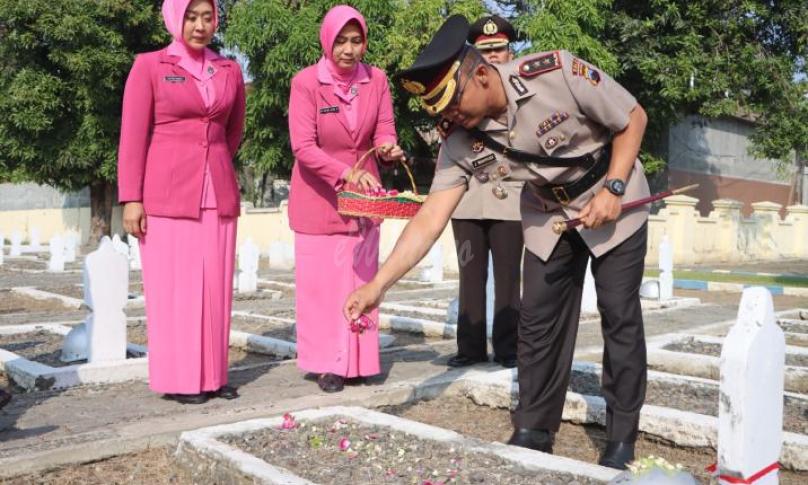Kapolres Tegal Kota AKBP Jaka Wahyudi, SIK, MSi, memimpin langsung kegiatan Ziarah dengan dihadiri oleh Wakapolres, Pejabat Utama Polres, Kapolsek jajaran, para perwira, anggota Polres Tegal Kota dan perwakilan dari PP Polri serta Bhayangkari Cabang Tegal Kota.