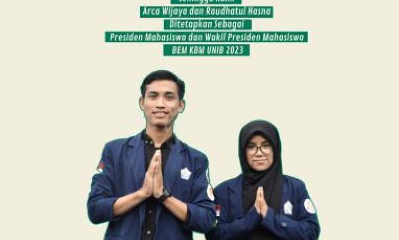 Dengan hasil tersebut maka secara Sah dan Resmi nahkoda kepemimpinan BEM KBM UNIB tahun 2023 dipimpin Oleh Arca Wijaya yang berasal dari fakultas Pertanian dan Raudhatul Hasna yang berasal dari Fakultas Keguruan dan Ilmu Pendidikan menjadi Presma dan Wapresma Terpilih BEM KBM UNIB Tahun 2023.