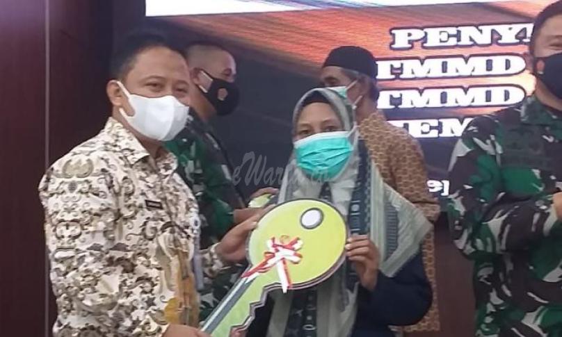 Neneng Suryani warga RT01/05, kelurahan Pengasinan sekaligus penerima manfaat program TMMD Ke-112 Kodim Depok mengucapkan terima kasih kepada TNI yang telah merehab rumahnya menjadi layak huni.