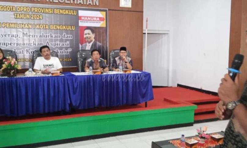 BENGKULU, eWarta.co -- Anggota Dewan Perwakilan Rakyat Daerah (DPRD) Provinsi Bengkulu Tahun 2024 fraksi Partai Hanura Daerah Pemilihan 1 Kota Bengkulu, Usin Abdisyah Putra Sembiring SH melaksanakan Reses di Balai Pelatihan Kesehatan (Bapelkes) Provinsi Bengkulu, Sabtu (23/11/2024).