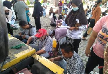 Tim Pamor Keris Polres Blitar Kota Pantau Antrean Warga Beli Minyak Goreng Curah