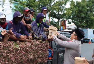 Bagikan Takjil, Kapolres Brebes Ingatkan Pengguna Jalan Jaga Keselamatan