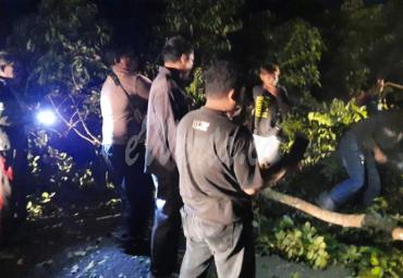 Dibantu Warga, Polsek Kota Manna Evakuasi Pohon Tumbang Tutupi Jalan Lintas