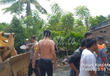 Bersama Warga Babinkamtibmas Bersihkan Puing Rumah Kebakaran