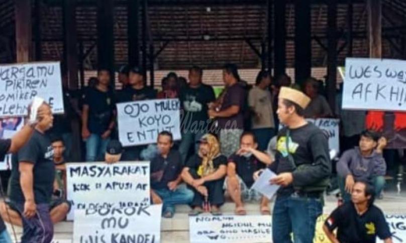 Setyo Budi Pranyoto selaku koordinator aksi, menyampaikan bahwa ada 7 tuntutan warga yang harus dipenuhi oleh pemerintah desa antara lain;