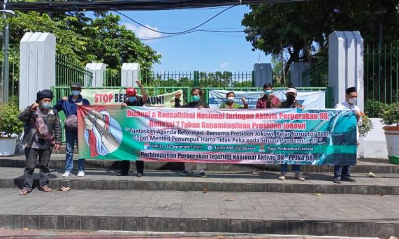 Demikian dikatakan Ketua Umum PPJNA 98 Anto Kusumayuda dalam pertemuan aktivis 98 di Tugu Proklamasi, Jakarta Pusat (17/9/2021). "Jokowi harus menangkap dan mengadili obligor BLBI, mengganti menteri tidak bekerja," ungkapnya.