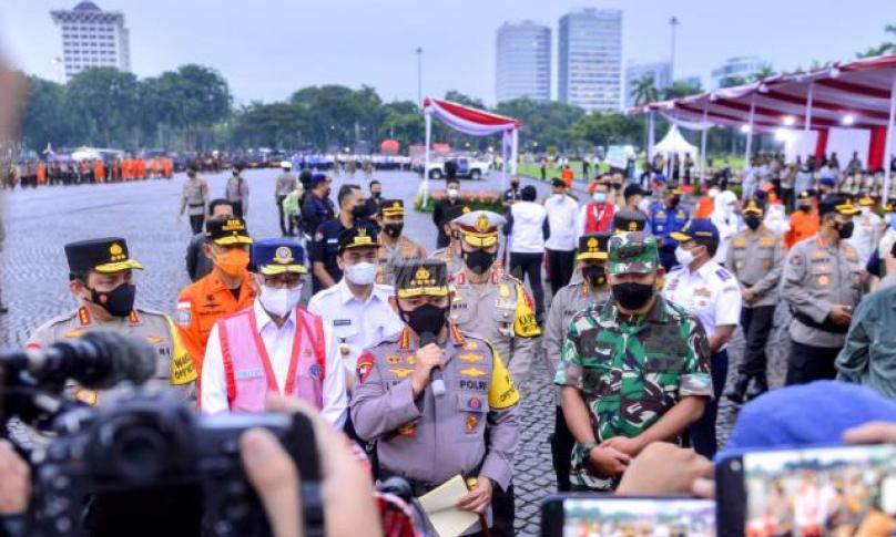JAKARTA,eWARTA.co -- Kapolri Jenderal Listyo Sigit Prabowo memimpin apel gelar pasukan operasi ketupat Tahun 2022 di Lapangan Monas, Jakarta Pusat, Jumat (22/4/2022). Kegiatan itu merupakan pengecekan akhir untuk kesiapan menjelang pelaksanaan mudik Hari Raya Idul Fitri atau Lebaran tahun 2022.