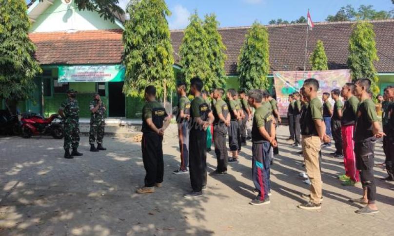Blitar, eWarta.co - Untuk menanamkan kedisiplinan kepada para anggota Banser, Babinsa Koramil Tipe B 0808/16 Talun Kodim 0808/Blitar Serka Susanto dan Serda Edi Prasetyo, memberikan pelatihan Peraturan Baris Berbaris (PBB), bertempat di MI Misbahul Munir Desa Kendalrejo Kecamatan Talun Kabupaten Blitar, Sabtu (30/7/2022).