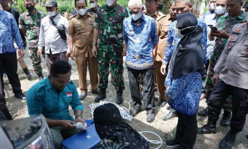 Dikesempatan ini Bupati Asahan bersama dengan Asisten Perekonomian dan Pembangunan, Kadis Kominfo Kabupaten Asahan, Kasat Pol PP Kabupaten Asahan, Kadis Perhubungan Kabupaten Asahan, Kadis Pertanian Kabupaten Asahan, Kepala Kesbangpol Kabupaten Asahan, Unsur Forkopimcam Air Batu dan tamu undangan lainnya melihat proses penyuntikan vaksin kepada hewan ternak. (3rik).