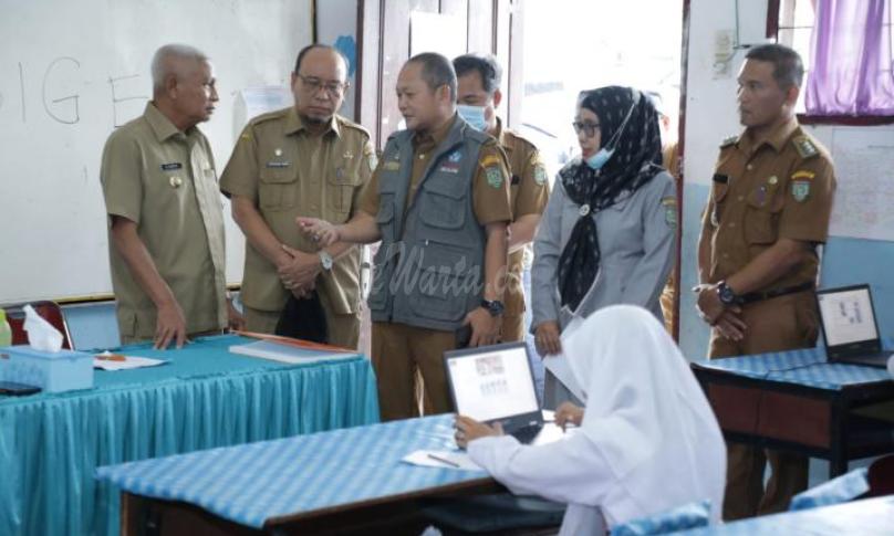 ASAHAN, eWARTA.co -- Bupati Asahan H. Surya, BSc didampingi Sekretaris Daerah Drs. John Hardi Nasution, MSi, Kepala Dinas Pendidikan, Kepala Dinas Kominfo (Mewakili) meninjau pelaksanaan Asesmen Nasional Berbasis Komputer (ANBK) tingkat Sekolah Dasar (SD) di SD 014646 Air Teluk Kiri Kecamatan Teluk Dalam dan SD 013837 Sei Alim Ulu, Kecamatan Air Batu. Peninjauan yang dilakukan pada hari ini dimaksudkan untuk memastikan Pelaksanaan ANBK berjalan dengan baik.