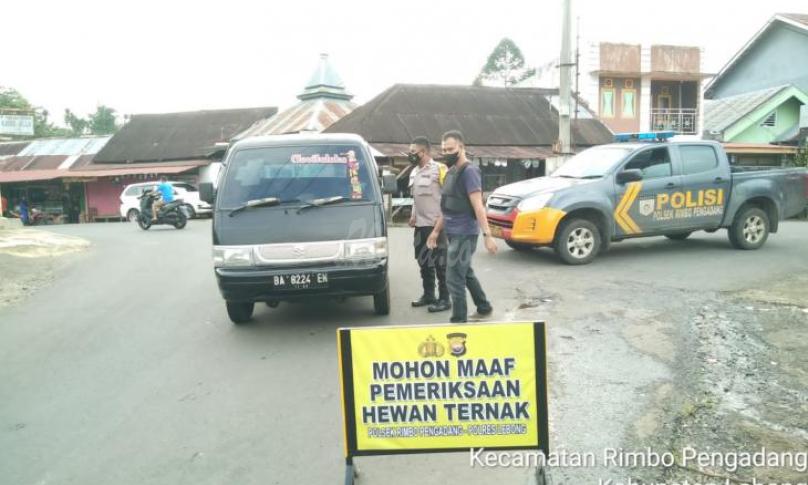 Bengkulu, eWARTA.co -- Antisipasi penularan Penyakit Mulut dan Kuku (PMK) pada hewan ternak, Minggu (19/06/2022) Personil Polsek Rimbo Pengadang melaksanakan patroli dan monitoring terhadap kendaraan bermuatan hewan ternak (Sapi) di jalan Umum simpang Topos.