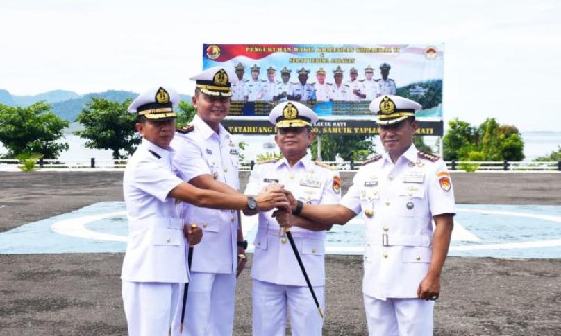 BENGKULU, eWarta.co -- Komandan Komando Daerah TNI Angkatan Laut (Dankodaeral) II Padang Laksamana Muda TNI Sarimpunan Tanjung pimpin serah terima Jabatan Danlanal Bengkulu dari Letkol Laut (P) Octo Manurung, S.T kepada Letkol Laut (P) Nurwahidin, S.H., M.Tr.Opsla di Loby Mako Kodaeral II Padang., Rabu, (3/09/2025).