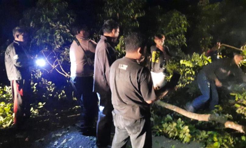 Pohon tumbang di Jalan Lintas Manna Pagar Alam Desa Tebat Kubu Kec. Kota Manna Kab. Bengkulu Selatan menutupi seluruh badan jalan sehingga tidak bisa dilewati oleh kendaraan bermotor dari ke dua arah.