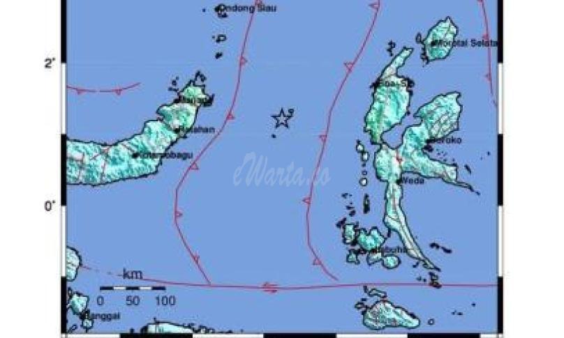 Kotamobagu,eWarta.co – Badan Meteorologi, Klimatologi, dan Geofisika (BMKG) melaporkan terjadinya gempa bumi dengan magnitudo 7,3 pada Kamis,(2/4/2026, pukul 05.48 WIB. Pusat gempa berada di koordinat 1,21° LU dan 126,25° BT, atau sekitar 127 kilometer tenggara Kota Bitung, Sulawesi Utara, dengan kedalaman 18 kilometer.