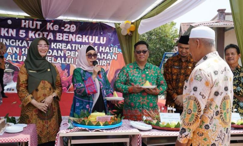 BENGKULU, ewarta.co -- Ketua Dewan Kerajinan Nasional Daerah (Dekranasda) Provinsi Bengkulu Derta Rohidin hadiri acara HUT ke-29 SMKN 5 Kota Bengkulu, Job Fair dan Pameran Kerajinan (Produk TeFa Semengga) di SMKN 5 Lingkar Barat Kota Bengkulu, Kamis (5/10/2023).