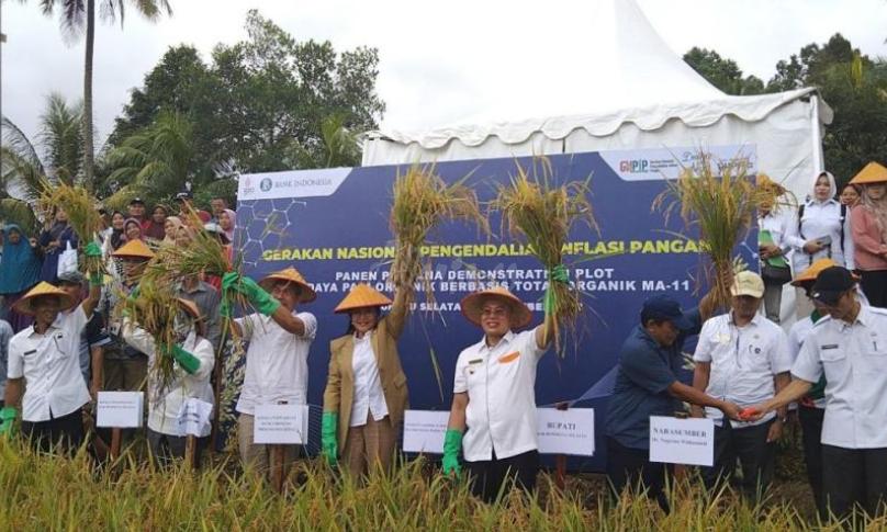 Bengkulu, eWarta.co -- Bank Indonesia perwakilan Bengkulu menginisiasi panen perdana pertanian padi organik di Pematang Gambir, Seginim, Bengkulu Selatan, Rabu (8/12/2022).