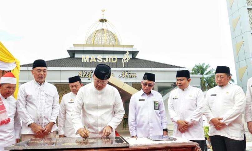 BENGKULU, ewarta.co -- Gubernur Rohidin Mersyah meresmikan Masjid Alif Lam Mim milik Pemerintah Provinsi Bengkulu, serta launching kelas perdana Baca Al-Qur'an untuk ASN dan THL di lingkungan pemerintah provinsi Bengkulu di Halaman Masjid Alif Lam Mim Kantor Gubernur Bengkulu, Senin(9/1).