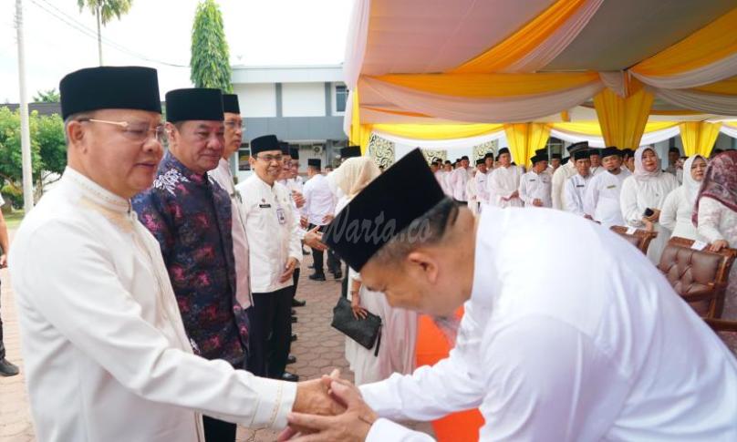 Adapun sebelumnya acara ini didahului dengan ceramah agama. Usai itu mereka saling bersalam dengan gubernur, wakil gubernur, sekda dan juga jajaran kepala organisasi perangkat daerah (OPD).