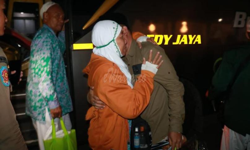 TEGAL, eWarta.co - Jemaah haji Kota Tegal musim haji 1444H/2023, yang tergabung dalam Kloter 34, telah kembali ke Kota Tegal. Jemaah tiba di Pendopo Ki Gede Sebayu Kota Tegal tepat pukul 01.00 WIB, Senin (17/7/2023).