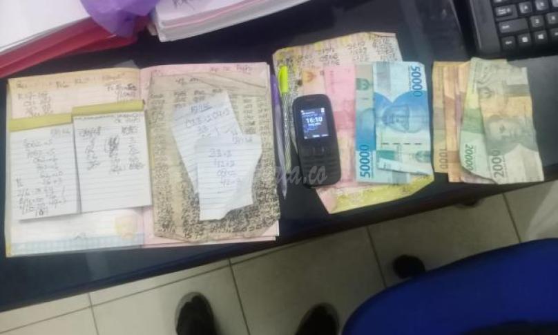 "Barang bukti yang diamankan dari pelaku berupa Uang tunai Rp. 338.000 (tiga ratus tiga puluh delapan ribu rupiah), 2 (dua) buah blok notes, 2 (dua) buah pulpen, 1 (satu) buah buku berisikan angka angka, 1 (satu) unit hp nokia hitam," ungkapnya.