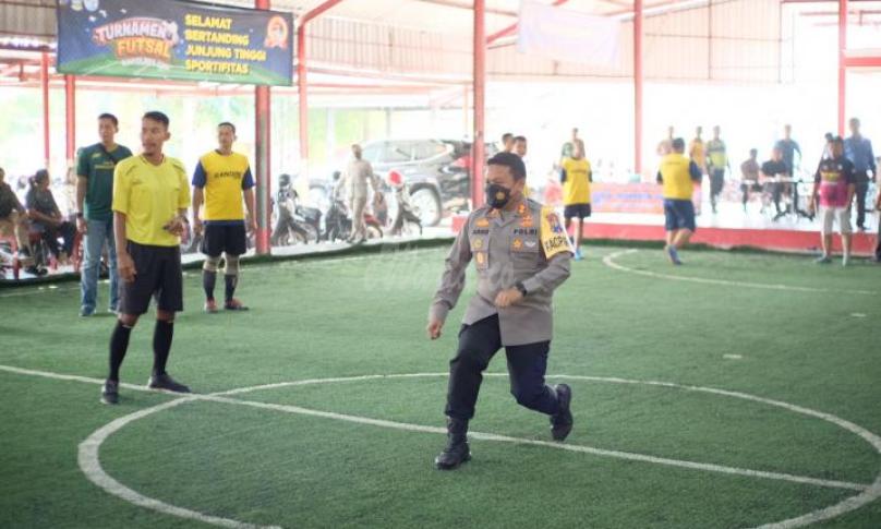 Kapolres Blitar Kota AKBP Argowiyono membuka turnamen futsal dalam rangka menyambut HUT Bhayangkara ke 76 tahun.