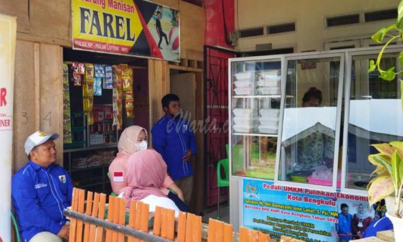 BENGKULU,eWARTA.co -- Anggota Dewan Piminan Daerah Republik Indonesia (DPD-RI) Hj Riri Damayanti Jhon Latif didampingi Ketua Dewan Pimpinan Daerah Komite Nasional Pemuda Indonesia (DPD–KNPI) Kota Bengkulu Supratman mengunjungi rumah warga yang mendapatkan bantuan gerobak usaha mikro kecil menengah (UMKM), Jumat (21/1/22).