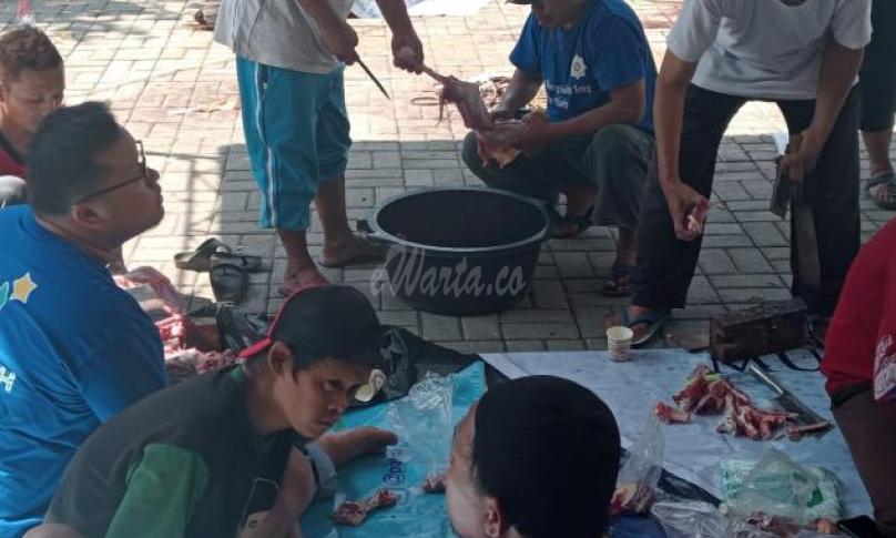 TEGAL, ewarta.co -- Masjid Nur Aisyah Nadirin atau disebut Masjid Nun melaksanakan kegiatan penyembelihan hewan kurban. Pelaksanaan penyembelihan dilakukan di depan halaman masjid di Jalan Perintis Kemerdekaan, Panggung, Tegal Timur, Kota Tegal, Rabu (28/6/2023).