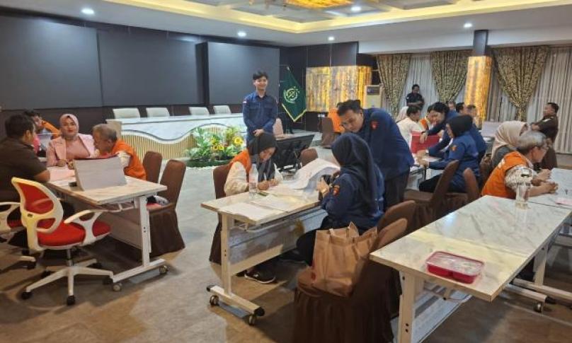 Kesembilan tersangka, yang terdiri dari unsur petinggi perbankan dan pihak PT DPM, tampak mengenakan rompi oranye khas tahanan saat proses pelimpahan yang didampingi pengacara di Aula Kejati Bengkulu.