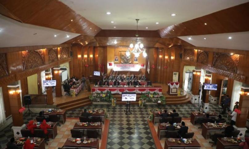 Asahan, eWARTA.co - Sebagai rangkaian kegiatan peringatan HUT Kemerdekaan ke-77 RI, Bupati dan Forkopimda Kabupaten Asahan mengikuti Rapat Paripurna DPRD Kabupaten Asahan Dalam Rangka Mendengarkan Pidato Kenegaraan Presiden Republik Indonesia Ir. Joko Widodo secara virtual dari Aula Rambate Rata Raya Sekretariat DPRD Kabupaten Asahan, Selasa (16/08/2022)