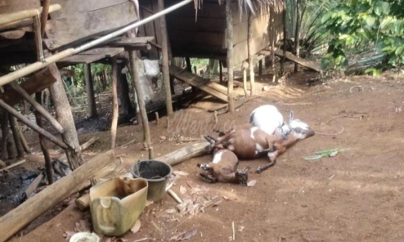 SELUMA, eWarta.co -- Kasus Matinya hewan ternak di Kabupaten Seluma kali ini kembali lagi terjadi. 4 ekor kambing milik mustami masyarakat Desa Lubuk lagan Kecamatan Seluma Barat Kabupaten Seluma mati dengan luka robek di bagian leher.