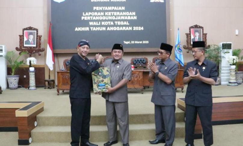 TEGAL, eWarta.co – Wali Kota Tegal, Dedy Yon Supriyono menyampaikan Laporan Keterangan Pertanggungjawaban (LKPJ) Wali Kota Tegal Akhir Tahun Anggaran 2024 kepada Dewan Perwakilan Rakyat Daerah (DPRD) Kota Tegal dalam Rapat Paripurna yang berlangsung di Ruang Rapat Paripurna DPRD Kota Tegal, Kamis (20/3/2025).