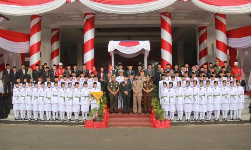 Bengkulu, eWARTA.co -- Setelah melalui seleksi dan pemusatan latihan, sebanyak 54 Pasukan Pengibar Bendera Pusaka (Paskibraka) Provinsi Bengkulu Tahun 2022 dikukuhkan Gubernur Rohidin Mersyah, pada Senin (15/8/2022) di Balai Raya Semarak Bengkulu.