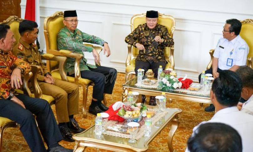 BENGKULU, eWarta.co -- Gubernur Rohidin Mersyah menerima audiensi Deputi Geofisika BMKG Hanif Anfi Nugraha di Balai Raya Semaràk Bengķulu, Selasa (23/4/2024).