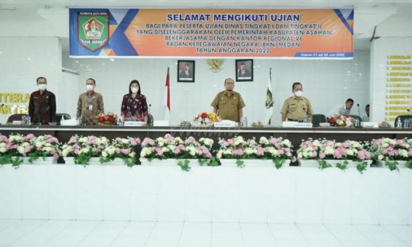 Asahan, eWARTA.co - Pemerintah Kabupaten Asahan melalui Badan Kepegawaian Daerah Kabupaten Asahan, menyelenggarakan ujian Dinas Tingkat I dan Tingkat II bagi Aparatur Sipil Negera (ASN) Dilingkungan Pemerintah Kabupaten Asahan, bertempat di Aula Melati Kantor Bupati Asahan, Selasa (21/06/22).