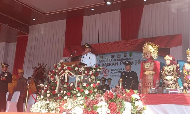PAGARALAM, eWarta.co -- Pemerintah Kota (Pemkot) Pagar Alam melaksanakan Upacara Pengibaran Bendera Merah Putih dan Peringatan Detik-Detik Proklamasi dalam rangka memperingati Hari Ulang Tahun (HUT) Republik Indonesia (RI) Ke-79 tahun, di Lapangan Merdeka, Alun-Alun Utara Kota Pagar Alam.