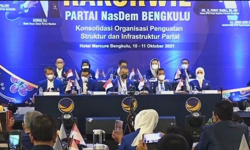Rapat kordinasi wilayah (Rakorwil) yang digelar sejak Minggu (10/10/21) ini dihadiri oleh dewan pimpinan daerah (DPD) dari 10 kabupaten kota dan dipimpin oleh Wakil Ketua Umum NasDem Ahmad Ali.