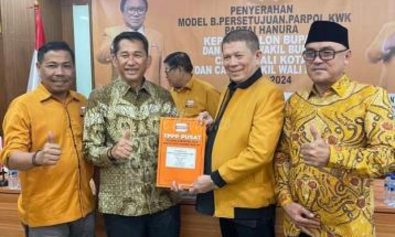 BENGKULU, eWarta.co -- Jelang pendaftaran Calon Kepala Daerah dan Calon Wakil Kepala Daerah dalam Pilkada serentak tahun 2024 ini. Partai Hanura secara resmi memberikan model persetujuan B1 KWK kepada kandidat Bakal Paslon Walikota dan Wakil Walikota Bengkulu kepada Benny Suharto - Farizal.