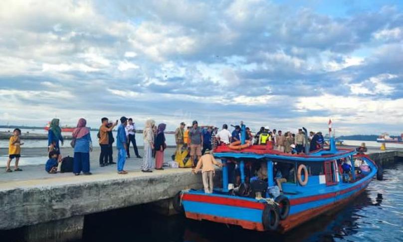 Sehingga penumpang pun diangkut menggunakan kapal transit untuk membantu pengantaran dari Kapal KM Pulau Telo ke dermaga.