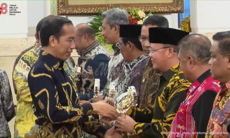 Penghargaan tersebut diserahkan oleh Presiden Joko Widodo kepada Gubernur Bengkulu Rohidin Mersyah, pada Rakornas Pengendalian Inflasi Tahun 2023, di Istana Negara, Kamis (31/08/2023).