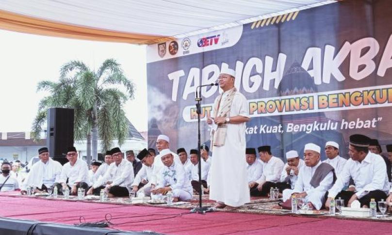 “Tabligh Akbar ini adalah salah satu rangkaian HUT ke 54 Provinsi Bengkulu. Masyarakat Kuat Bengkulu Hebat adalah tema yang diangkat sehingga Tabligh Akbar ini selain memperkokoh kekompakan kita semua tapi juga meningkatkan kualitas ketakwaan kita kepada Allah Swt,” ungkapnya.