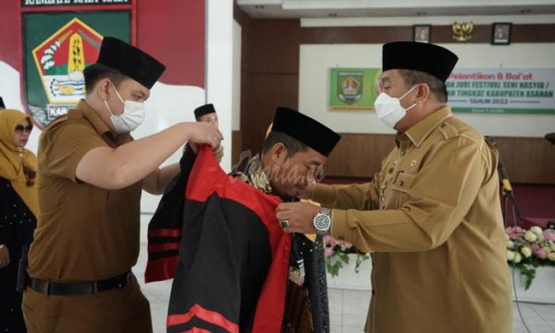 Sebelum memberikan bimbingan dan arahannya Wakil Bupati Asahan memakaikan toga kepada Ketua Merangkap Anggota Bidang Vokal (H. Khairussyahri, S. Pi) dan Ketua Merangkap Anggota Bidang Materi Suara (Dr. Hj. Erna Suriani M. Pdi) Dewan Juri Festival Nasyid/Qasidah Tahun 2022 Tingkat Kabupaten Asahan yang menandakan Dewan Juri Festival Nasyid Tahun 2022 Tingkat Kabupaten Asahan resmi dilantik.
