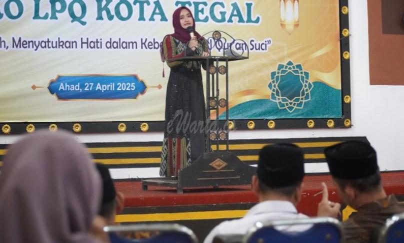TEGAL, eWarta.co -- Wakil Wali Kota Tegal, Tazkiyyatul Muthainnah hadiri halal bi halal dan Pelantikan Pengurus Badan Koordinasi Lembaga Pendidikan Al Qur'an (BADKO LPQ) di Gedung Mulia Damai, Kota Tegal, Minggu (27/4/2025).
