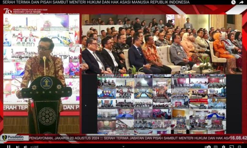 BENGKULU, eWarta.co -- Kantor Wilayah Kementerian Hukum dan Hak Asasi Manusia Bengkulu menghadiri acara serah terima jabatan (sertijab) dan pisah sambut Menteri Hukum dan HAM yang dilaksanakan secara virtual pada Selasa (20/8/2024).