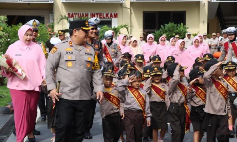 Dengan penuh kecerian dan semangat, kedatangan mereka yang didampingi oleh para guru dan pengurus Yayasan Kemala Bhayangkari Cabang Brebes disambut langsung oleh Kapolres Brebes AKBP Achmad Oka Mahendra bersama Ketua Bhayangkari Brebes Ny Mila Oka Mahendra di lobby Polres Brebes.