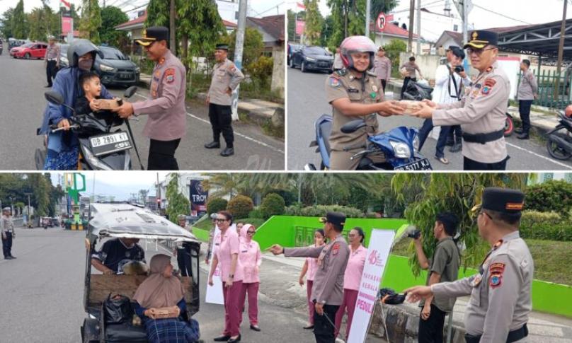 "Melalui kegiatan sederhana ini, kami ingin berbagi kebahagiaan serta membantu warga yang masih dalam perjalanan agar bisa berbuka puasa tepat waktu," ujar Kapolres Irwanto.