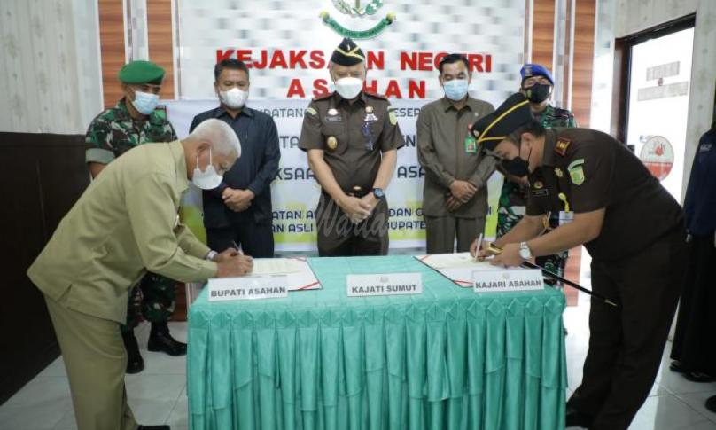 Usai melakukan Launching Rumah Restorative Justice Rombongan Kejatisu, Bupati Asahan dan Forkopimda melanjutkan agenda acara di kantor Kajari Asahan yaitu Penandatanganan Nota Kesepahaman antara Pemerintah Kabupaten Asahan dengan Kejaksaan Negeri Asahan tentang Penyelamatan Aset Daerah dan Optimalisasi Pendapatan Asli Daerah Kabupaten Asahan.