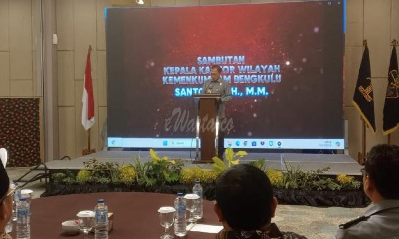 BENGKULU, eWARTA.co -- Kantor Wilayah Kementerian Hukum dan HAM Provinsi Bengkulu menggelar acara Promosi dan Diseminasi Indikasi Geografis Daerah di salah satu hotel di Kota Bengkulu pada Selasa (20/2/24). Acara ini dihadiri oleh Gubernur Bengkulu Rohidin Mersyah, Penjabat Walikota Bengkulu Arif Gunadi, serta beberapa kepala daerah atau wakil kepala daerah dari sembilan kabupaten.