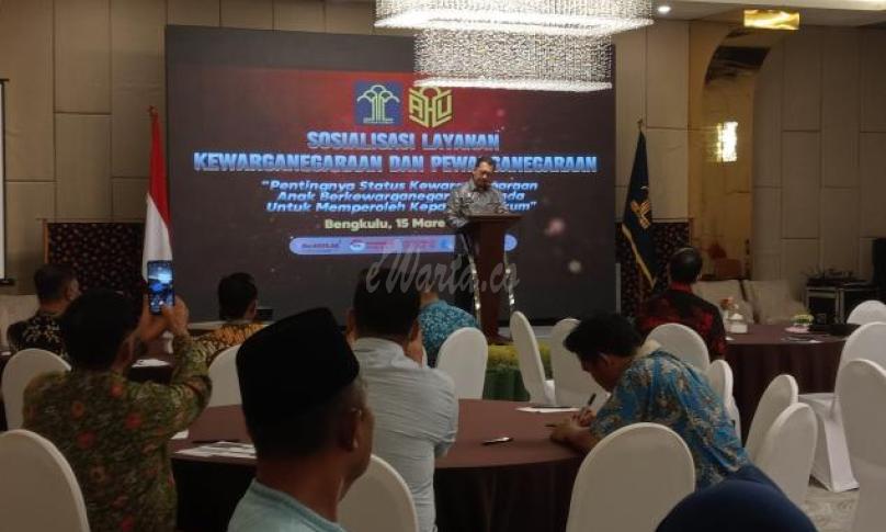Berangkat dari itu serta untuk memberikan pengetahuan dan wawasan mengenai hal tersebut, maka Kantor Wilayah Kementerian Hukum dan HAM (Kanwil Kemenkumham) Bengkulu melalui Divisi Pelayanan Hukum dan HAM menggelar Sosialisasi Layanan Kewarganegaraan dan Pewarganegaraan di Provinsi Bengkulu dengan mengangkat tema "Pentingnya Status Kewarganegaraan Anak Berkewarganegaraan Ganda Untuk Memperoleh Kepastian Hukum", pada Jumat (15/03/24).