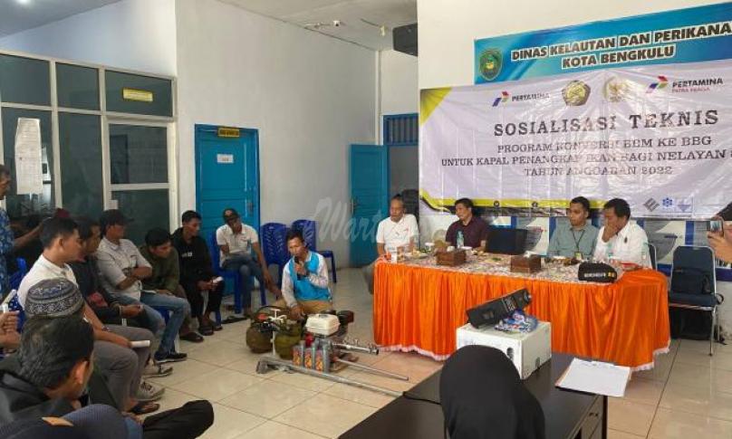 Bengkulu, eWarta.co -- Kementerian Energi Sumber Daya Mineral (ESDM) melalui Direktorat Jenderal Minyak Bumi dan Gas (Dirjen-Migas) melakukan sosialisasi penggunaan mesin berbahan bakar gas (BBG) atau liquefied petroleum gas (LPG) bagi nelayan tradisional di Kota Bengkulu, Jumat (18/11/2022).